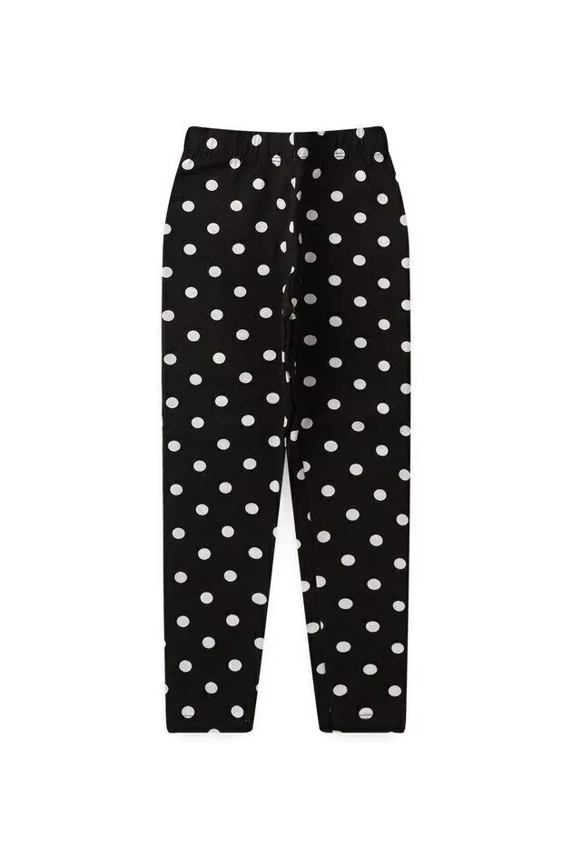 Conjunto composto por blusa e legging. A Blusa é confeccionada em meia malha na cor vermelha, possui gola redonda, mangas curtas, estampa com glitter, bainha nas mangas e barra. A legging é confeccionada em malha cotton na cor preta com bolinhas na cor branca, possui elástico no cós e bainha na barra.